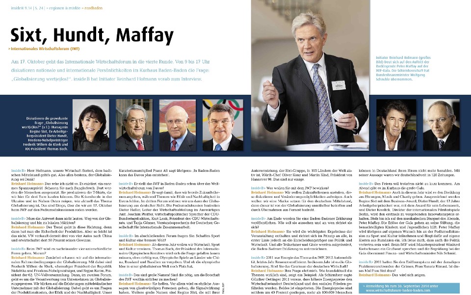Am 17. Oktober geht das Internationale Wirtschaftsforum in die vierte Runde. Von 9 bis 17 Uhr diskutieren nationale und internationale Persönlichkeiten im Kurhaus Baden-Baden die Frage: "Globalisierung wert(e)los?". insideB bat Initiator Reinhard Hofmann vorab zum Interview.